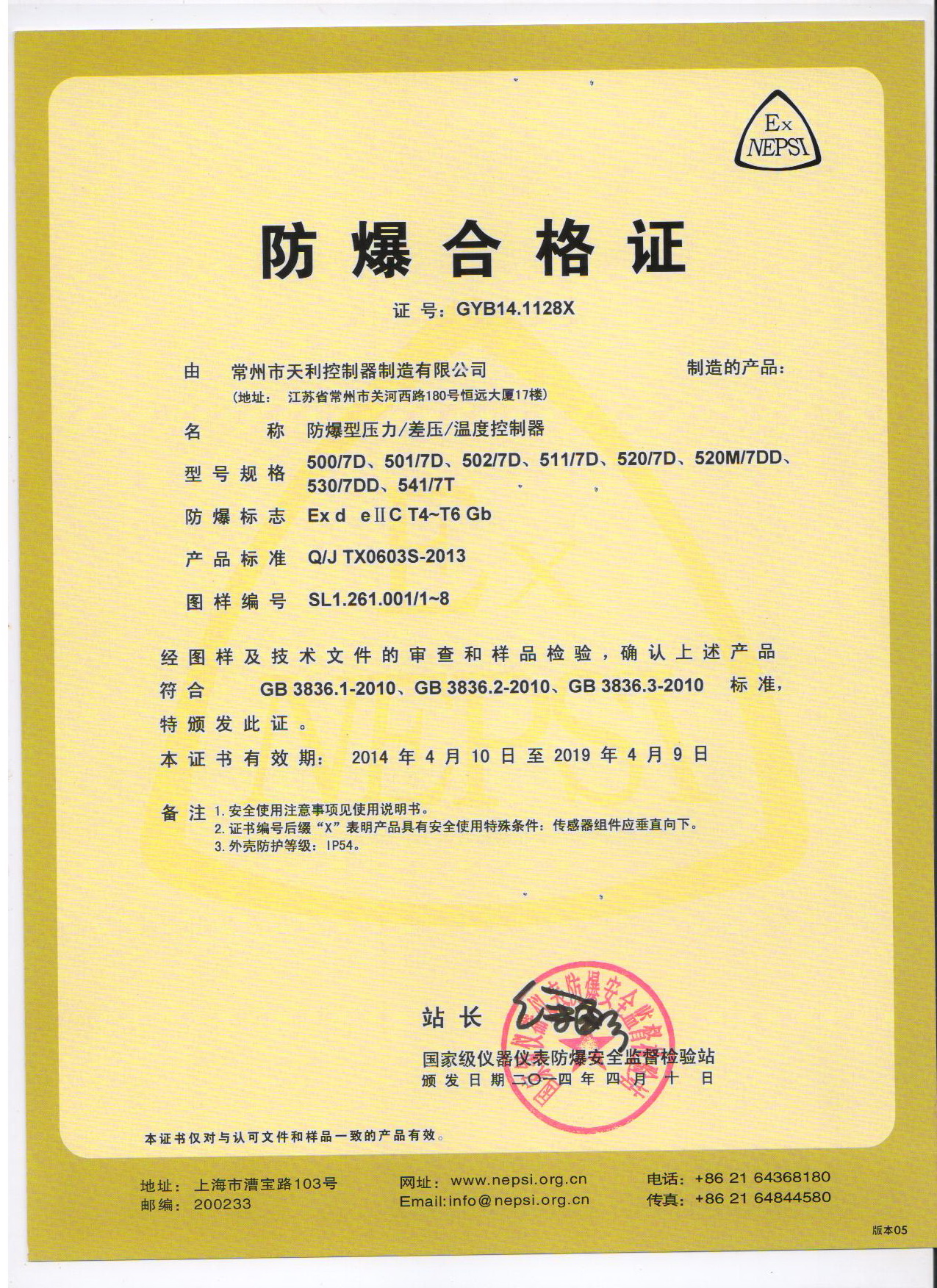 今天小編給大家介紹下本公司的防爆壓力開關,本公司的防爆壓力開關有專業機構的認證,下面是證書,可以放心使用。